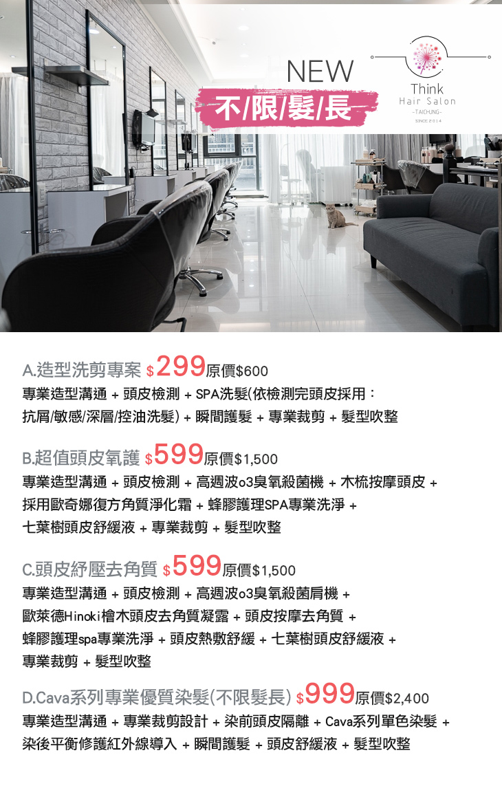 專業造型溝通 + 頭皮檢測 + 高週波o3臭氧殺菌肩機 + 歐萊德Hinoki檜木頭皮去角質凝露 + 頭皮按摩去角質 + 蜂膠護理spa專業洗淨 + 頭皮熱敷舒緩 + 七葉樹頭皮舒緩液 + 專業裁剪 + 髮型吹整