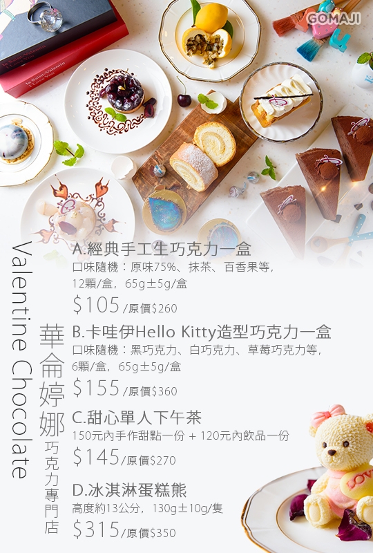 C.甜心單人下午茶:150元內手作甜點一份 + 120元內飲品一份