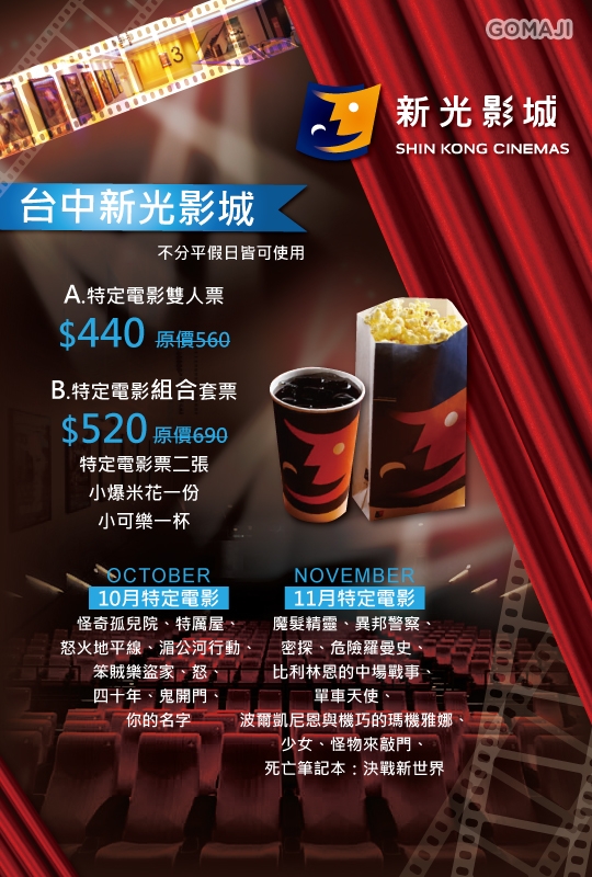 【台中新光影城】感謝麻吉們熱烈搶購,已全數賣光光。