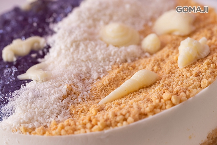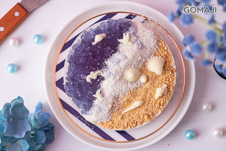 每個女孩心中都曾有過美人魚夢,這款海洋風的蛋糕絕對適合愛幻想的您 ~ ♥ 以一整罐純正椰漿製作的蛋糕體,柔順清爽的口感讓人非常著迷 ~ 使用進口蝶豆花製作的果凍平舖在上方,浪漫的靛色系搭配營造出海洋的感覺,搭配香濃椰子粉,讓沙灘的氛圍展現得更淋漓盡致,最後加上美麗貝殼點綴就完成了~這款做法看似困難,實際上是DIY新手也可以輕鬆完成的品項喔!