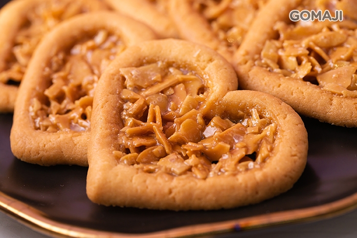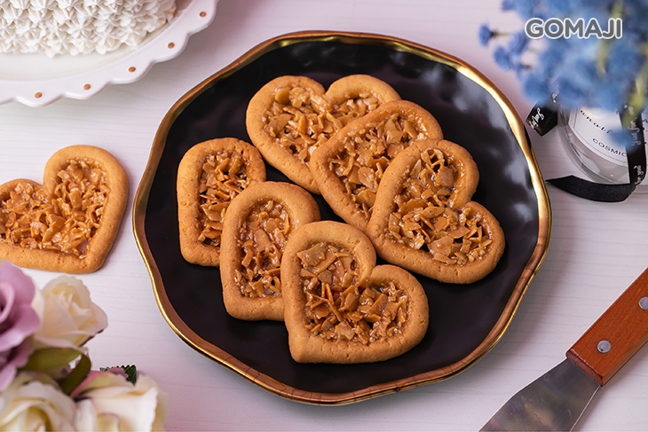 做成愛心造型的盾牌餅乾,外形像一塊盾牌,外圈是酥脆的餅乾,內圈有著酥脆的餡心,加上杏仁片的融合,嚼在嘴裡特別的香,輕嚐一口,就能為您擋掉不美麗的心情~