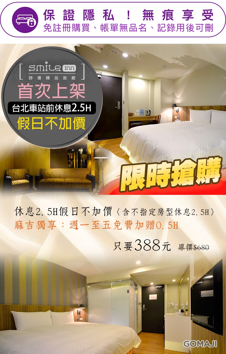 【台北-詩漫精品旅館】感謝麻吉們熱烈搶購,已全數賣光光。