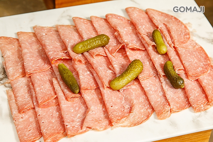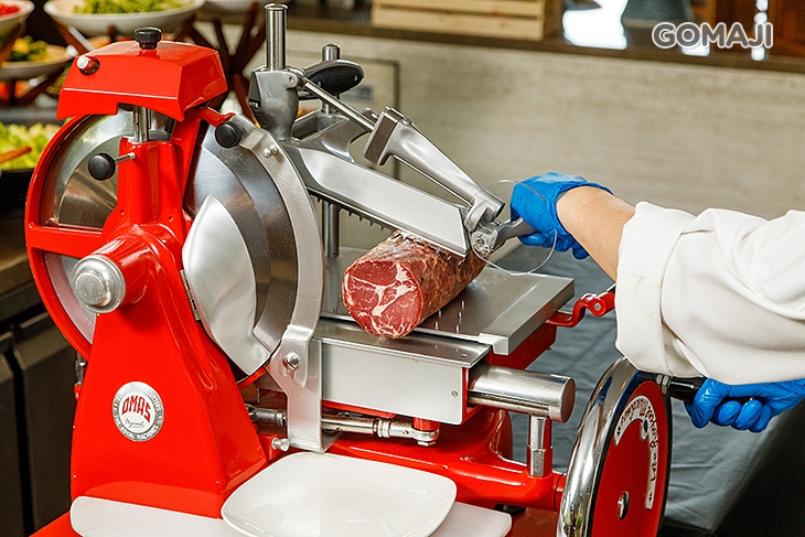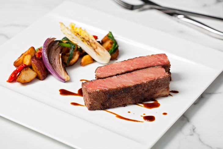 特選美國無骨牛小排部位放入真空袋以蒜頭、百里香、迷迭香醃漬,並以舒肥法(Sous Vide)隔水烹調達36小時,透過低溫慢煮讓溫度慢慢滲透至牛肉中心,不破壞質地且均勻受熱,達成自然的熟成與嫩化,並保留牛小排豐腴柔嫩的口感,再以煎烤的方式將外層表面烤至金黃酥脆,內層卻完美保留粉紅色的鮮嫩肉質,咬下口中充滿豐厚香甜的肉汁。