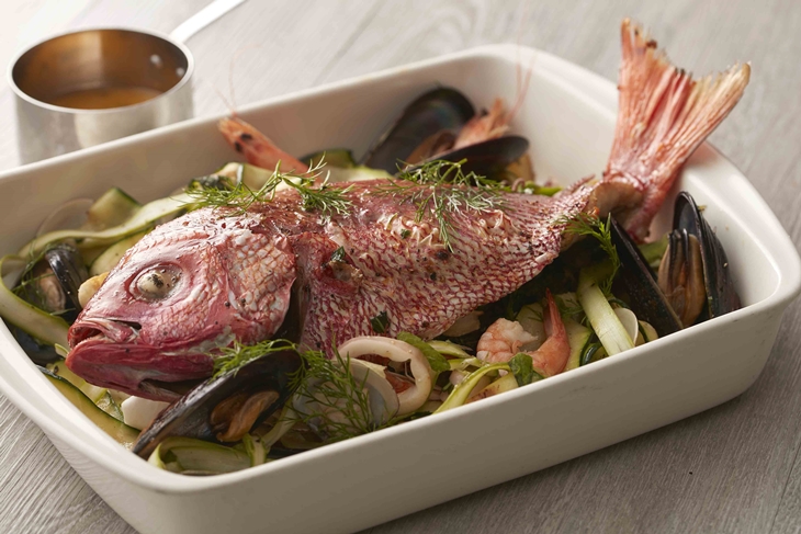 Baked Catch-of-the-Day Fish , Vegetables and Baby Potatoes, Clams and Seafood “Padellata”(Limited Supply)