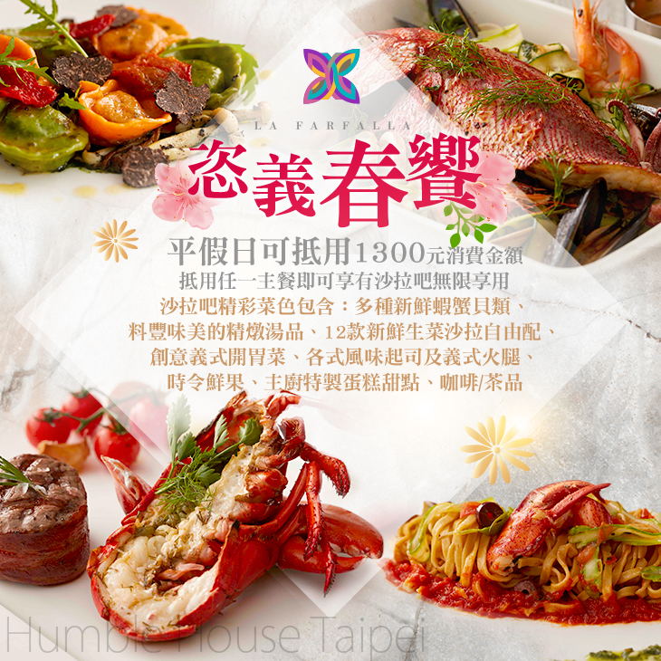 【台北寒舍艾麗酒店-LA FARFALLA義式餐廳】感謝麻吉們熱烈搶購,已全數賣光光。