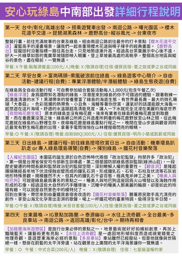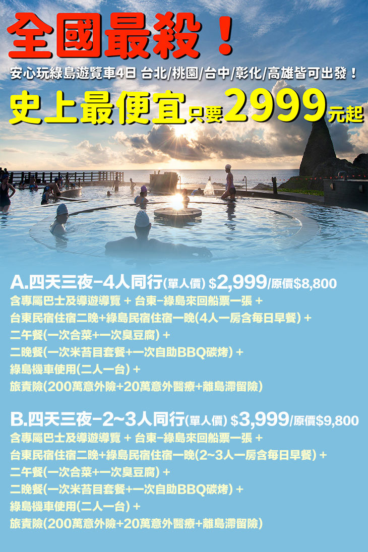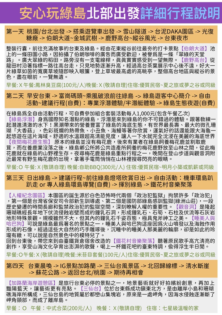 【安心玩綠島遊覽車+搭船4日(早去晚回)】感謝麻吉們熱烈搶購,已全數賣光光。