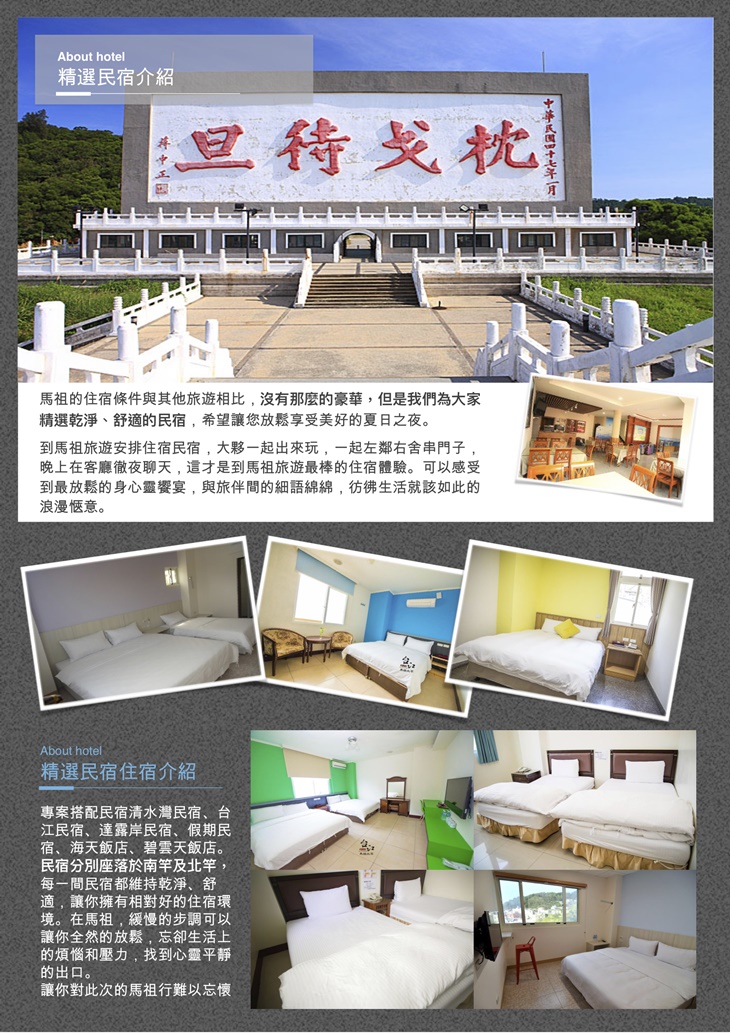 基隆港出發!2~4人同行(單人價)〈含基隆-馬祖來回船票一張 + 夜宿輪船體驗一晚+馬祖民宿住宿二晚(2~4人一房) + 二早餐(配合⺠宿安排每人一份,搭船抵達當日提供飯糰一個) + 二晚餐(中式合菜) + 專屬巴士及導遊導覽 + 旅責險(200萬意外險+20萬意外醫療+離島滯留險)〉