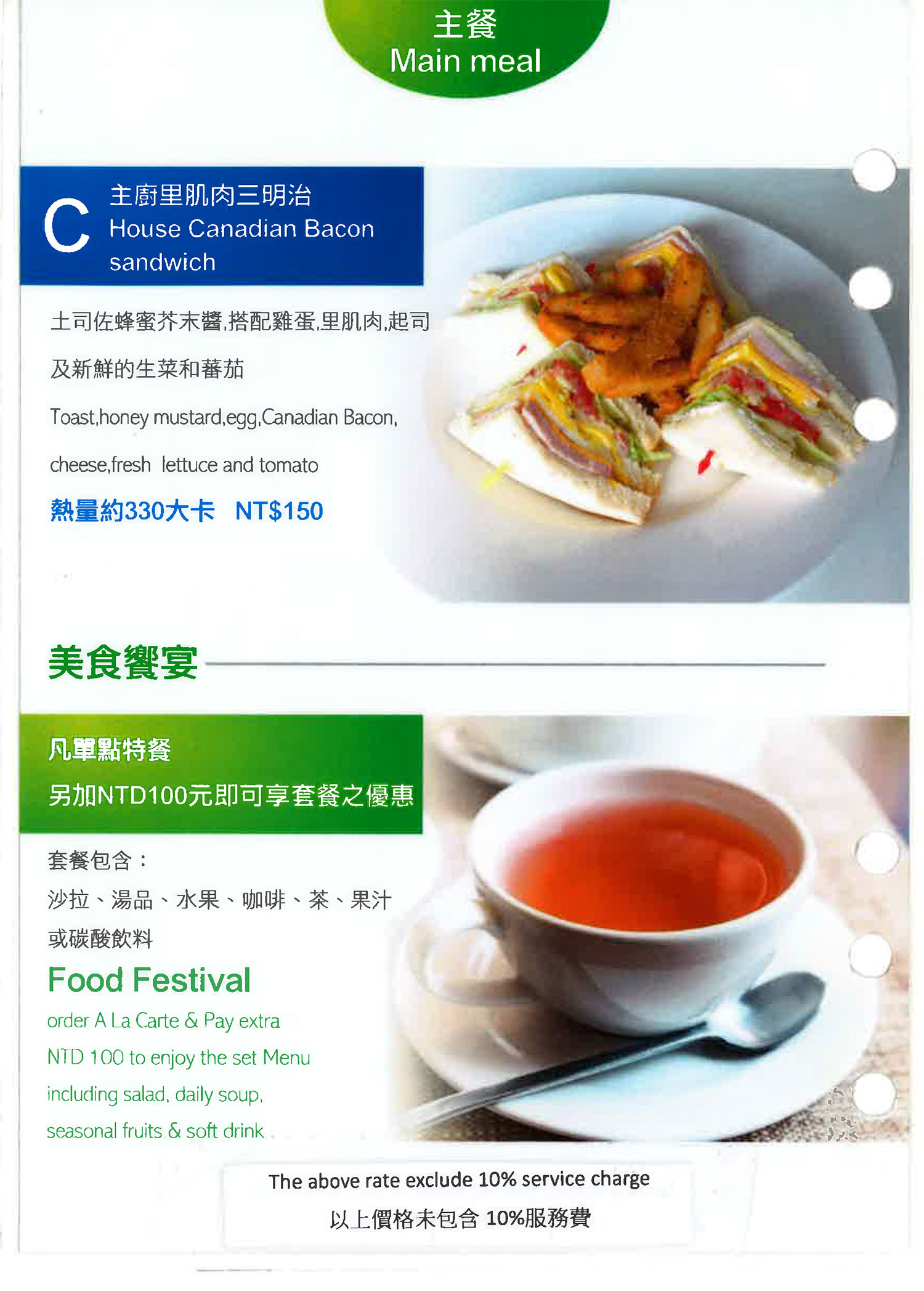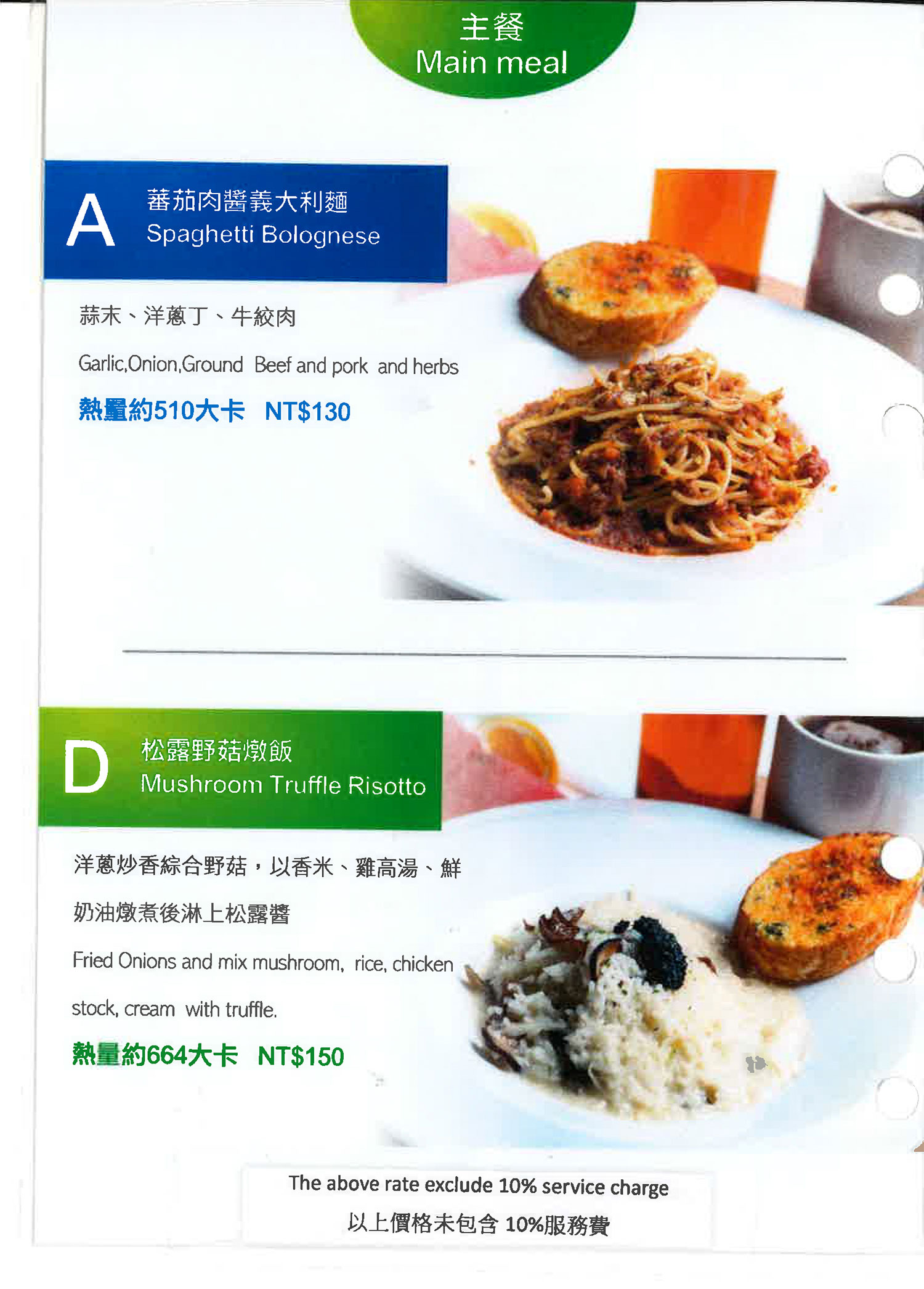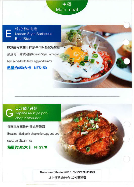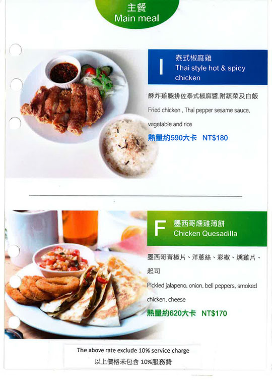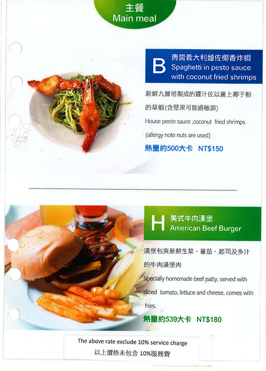 墨西哥燻雞薄餅、美式牛肉漢堡、青醬義大利麵佐椰香炸蝦、韓式烤牛肉飯、炸物拼盤、松露野菇燉飯、番茄肉醬義大利麵
