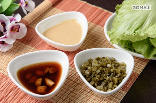 ▼招牌醬料三寶:臘八醋+豆腐乳+韭菜花醬