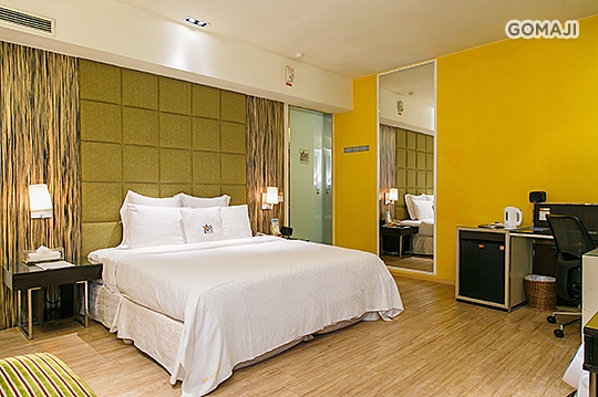 房內配備 iHome 播放器、32 吋電腦螢幕、沙發床組、浴室專屬個人液晶電視、42吋高畫質液晶電視、情境燈光群組等設備!此外,高雅舒適的餐廳也提供精緻、健康的餐點,補充好體力,讓您精神超飽滿!