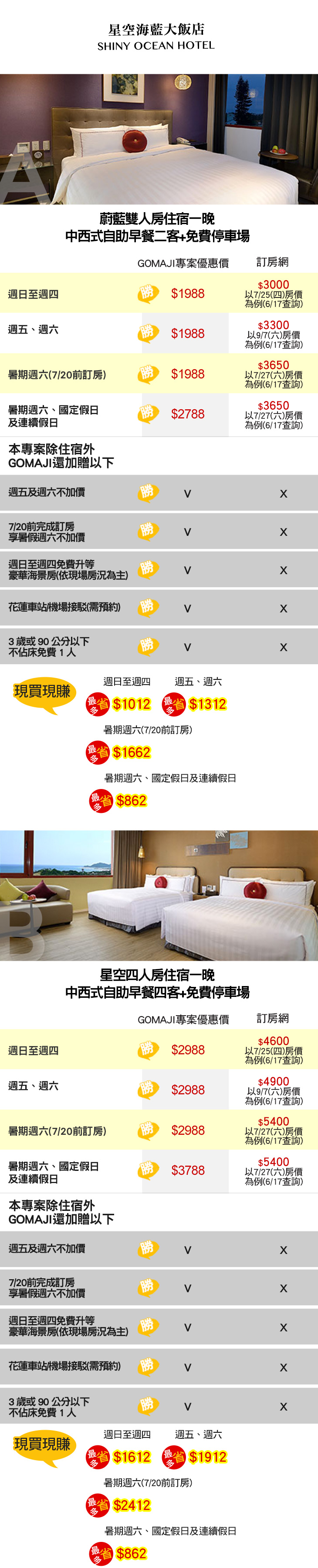 【花蓮-星空海藍大飯店】感謝麻吉們熱烈搶購,已全數賣光光。