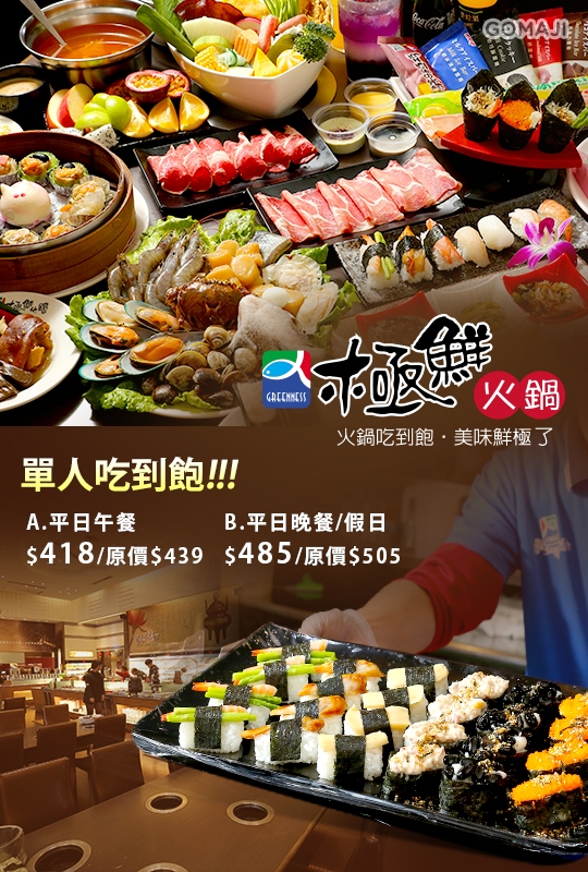 挑高百米建築,舒適的用餐環境,數十種火鍋湯料、新鮮蔬菜、鮮果沙拉吧無限供應,另有專人現點現做「日式壽司」沙拉吧,提供現作手捲、壽司。
