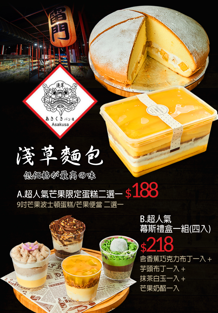 左右鄰居、親家厝邊,來來來,好康報給您知!中南部人氣麵包店【淺草麵包】與GOMAJI合作囉!成立至今,已擁有多家分店的【淺草麵包】,主打平價實惠的麵包、蛋糕及甜點等美味餐點,嚴選原物料,搭配專業烘焙技術,讓佳餚美味自然而然成為自家的活招牌,且深受大朋友和小朋友的喜愛。品項多元,口味單一、不重複,將時下所流行的最新元素,加入一點創意來發揮,讓顧客也能透過「吃」走在時代的尖端!明日早餐、下午茶點心、送禮品項還摸不著頭緒嗎?別擔心,趕緊下載GOMAJI最大吃喝玩樂APP,手刀購入一波!再晚就沒有囉!