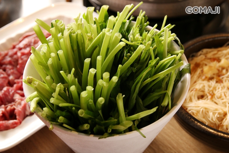 大口吃肉的同時也來點蔬菜吧!高麗菜、A菜、空心菜、花椰菜乾四選一,將特選的青菜放入鍋中熬煮,蔬菜的清甜與濃郁湯頭相結合,自然的好滋味讓人吃得意猶未盡!