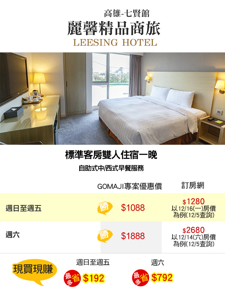 【高雄-麗馨精品商旅(七賢館)】感謝麻吉們熱烈搶購,已全數賣光光。