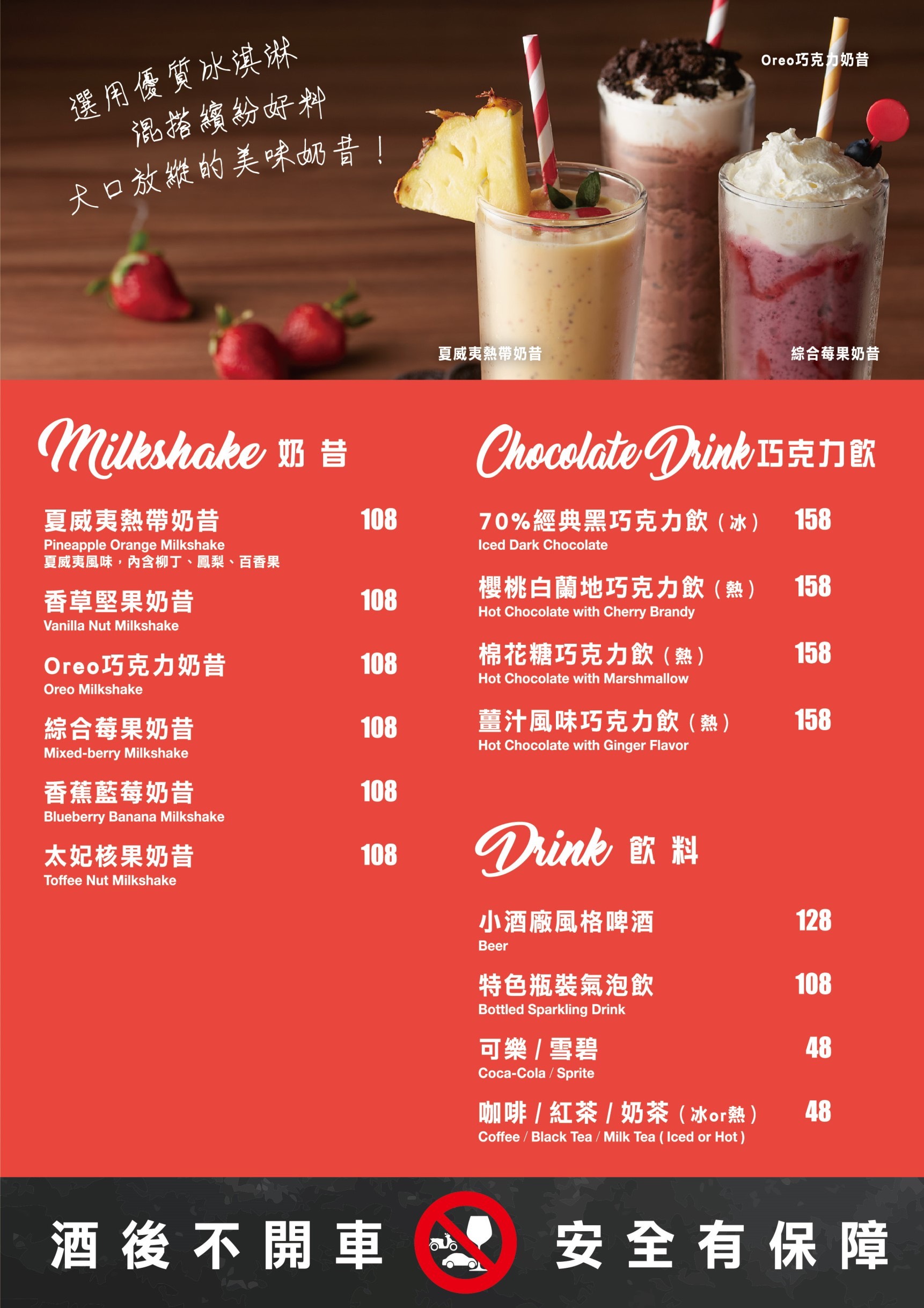 夏威夷熱帶口味、綜合莓果口味等各式奶昔