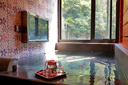 每間房間佈置皆呈現不同風格、不同特色,讓顧客依照自己需求選擇,烏來的好山好水值得你親自來體會。超大溫泉池讓你盡情享受烏來天然美人湯,洗滌一身疲憊,呵護每一吋肌膚。