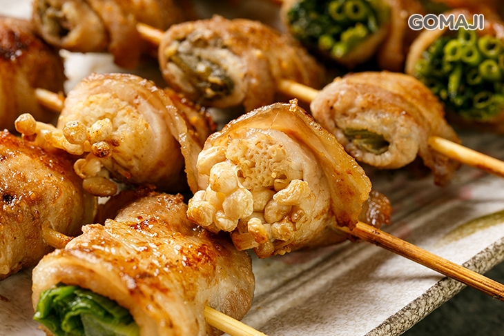來【成功8碳烤】怎能錯過人氣必點的烤肉串呢!將新鮮肉片,有牛、有豬,包進青蔥、空心菜、剝皮辣椒及金針菇,捲捲而起串進竹籤上架文火翻烤,肉串涮上獨門醬汁,讓肉串瞬間擁有焦糖般的迷人色澤,入口品嚐,不同內餡擁有不同風味,清爽不油膩,讓人一口接一口,不一會兒盤底淨空。