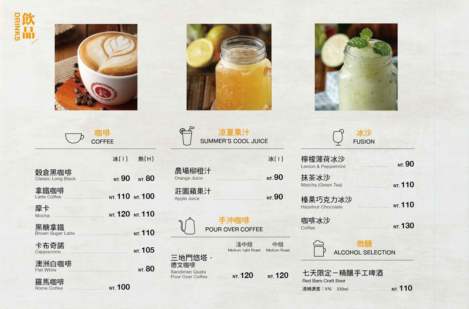 午後時光若與三五好友來到穀倉咖啡,可點一杯精選的黑糖拿鐵、懷舊的古早味紅茶或杏仁露,配上現點現做的穀粉鬆餅,每一口都吃的到黑芝麻或杏仁的獨特香味,絕對是穀倉咖啡必嘗的特色餐點之一。