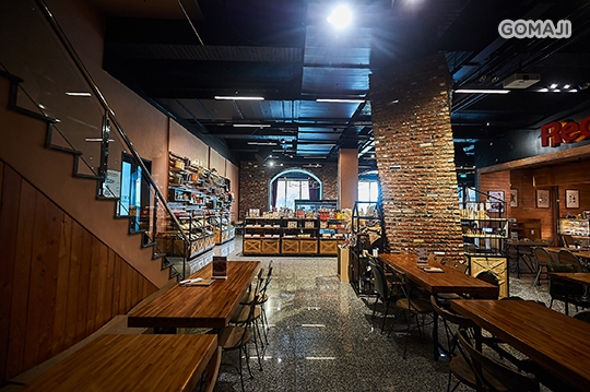 穀倉咖啡的每個角落都是令人驚豔的巧思,旋轉柱中鑲嵌的各種穀豆,透過燈光照射顯現出不同的形狀剪影,在粗曠中結合了穀物細緻的特色。置入在窗邊座位的互動裝置-「穀浪潮」,是利用圓周運動牽動五十條鋼纜與各介面節點,使木製平面上下波動,有如稻穗隨風搖曳一般,為整個空間增添不少生氣與創意,往往讓用餐的顧客們感到驚喜與驚嘆。
