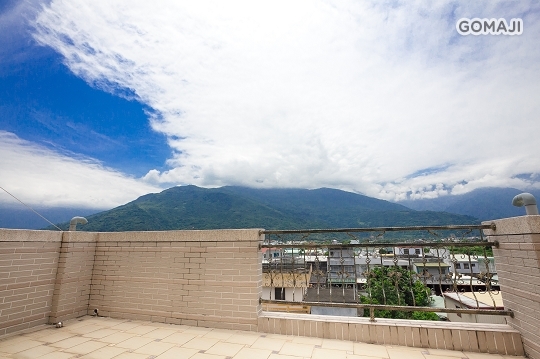 ▽上來頂樓可以見到山巒與藍天,讓人心曠神怡~