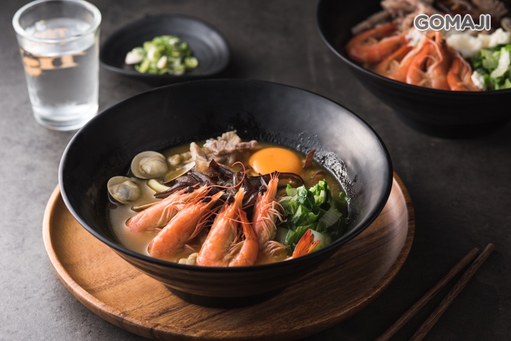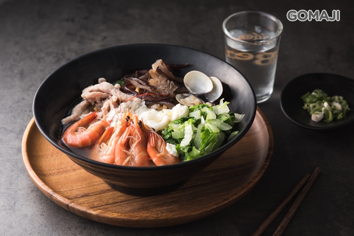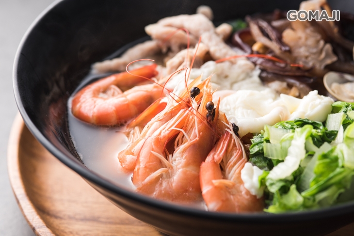 原味湯頭嚐起來溫醇、香氣十足,配料以新鮮活白蝦、肉絲、木耳、新鮮青菜為主,意麵刀工細膩、麵條Q彈有嚼勁,吸了湯汁後嚐起來更是涮嘴,富有鮮蝦海味及高湯醇香,不需額外添加醬汁就很有層次,吃完一整碗清爽無負擔!