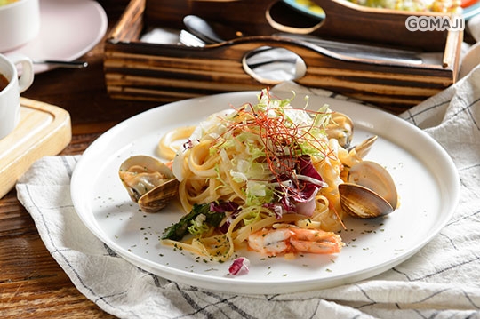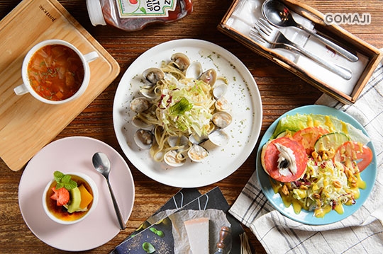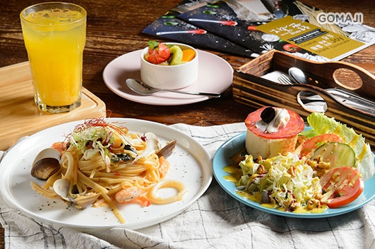 以開放式廚房提供日、西式義大利麵、手作甜點、咖啡下午茶等,結合知名洛碁商旅,請近年設計界竄起的梵荻設計公司打造舒適的用餐環境,不限時的用餐,寬敞的座位,180 度環狀窗景,將我們的用心從餐點延伸至空間上,帶給您全新的用餐體驗!