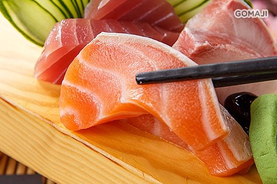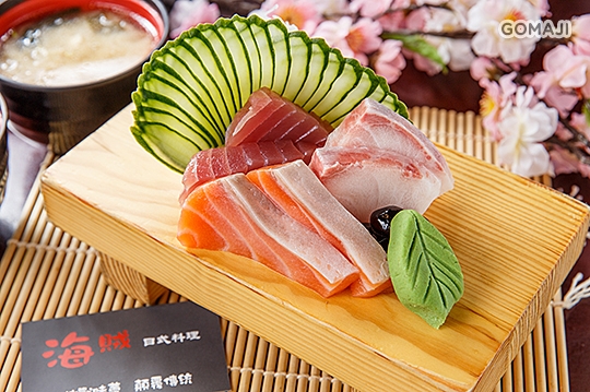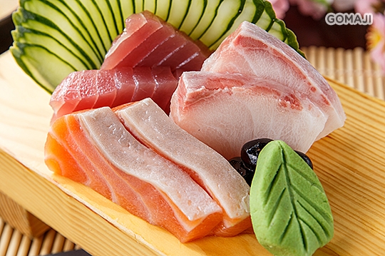 片片晶亮細緻的綜合生魚片,閃著動人的光波,挑逗味蕾準備大開殺戒!