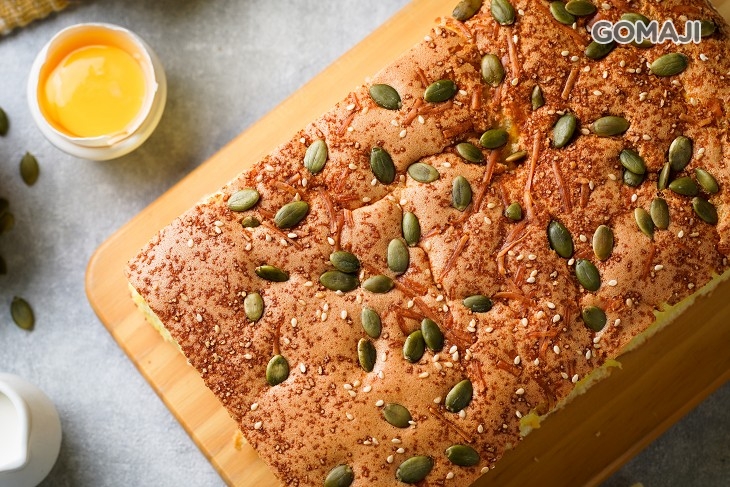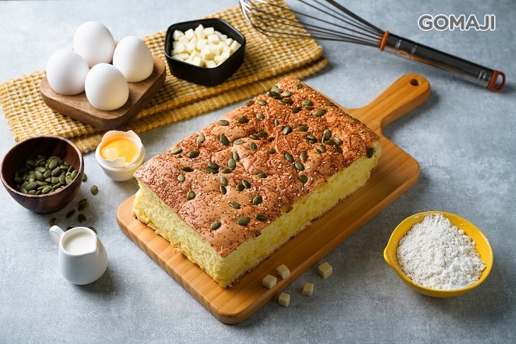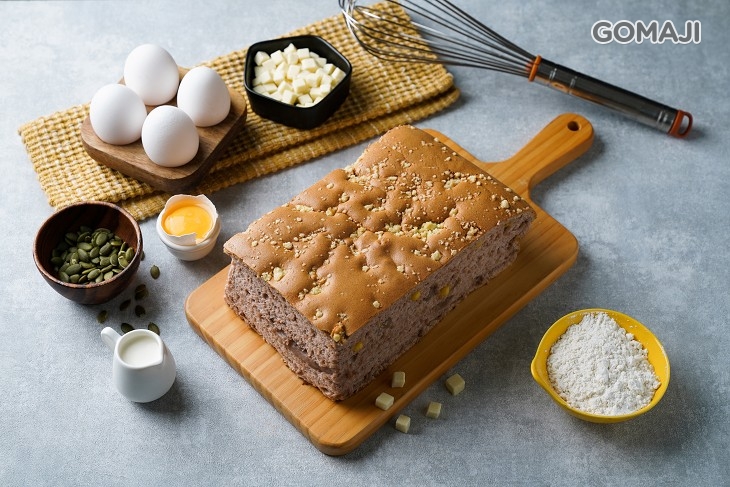以麵粉、新鮮雞蛋以及牛奶為基底製成的古早味蛋糕,口感相當綿密、濕潤,擁有簡單卻不平凡的好味道~加入甜度極高的南瓜和帶有鹹味乳酪,為整體風味加分,細細咀嚼,甜鹹相間的好味道讓人回味無窮!