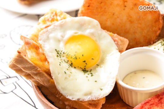多樣豐富的美味,搭配出極為營養的公雞太太法式焗醬土司!純香美味的土司,份量豐富的沙拉、嫩滑太陽蛋,健康滿點!