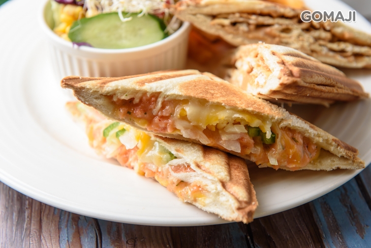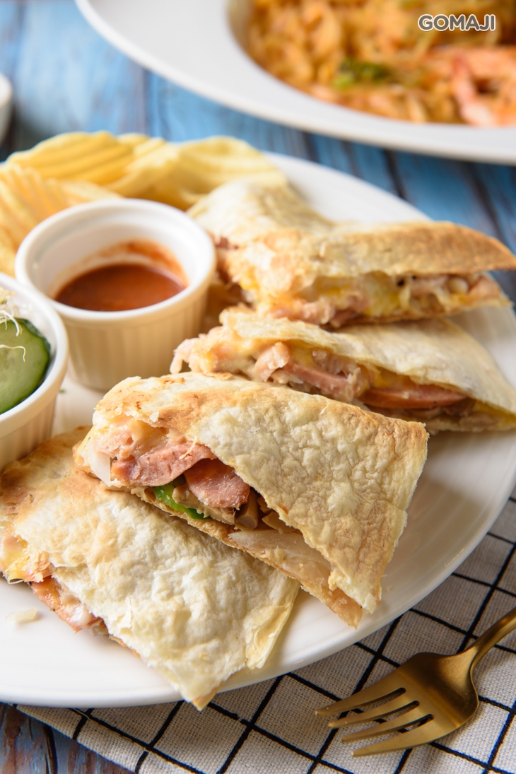 嚴選多樣食材放入盤中,最後豪邁舖上豐富乳酪絲,送入烤箱烤至恰到好處,濃郁乳香與食材香氣親密融合,每一口都能嚐到所有食材香,享用時,牽絲模樣更是令人驚呼連連!
