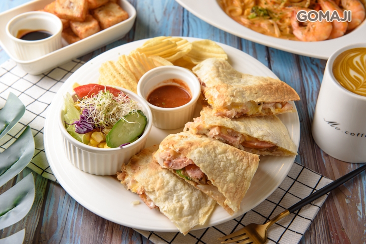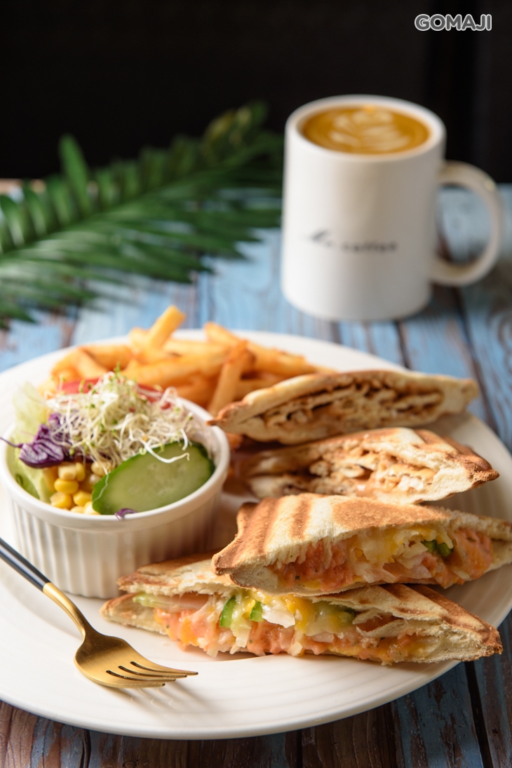 鮮甜的龍王蝦 加入起司結合出鹹甜的滋味,起司融化後的絲絲口感,讓平凡的土司成為一道華麗的餐點,最後搭配套餐有新鮮蔬菜沙拉、薯條、飲品等,份量十足營養均衡喔!