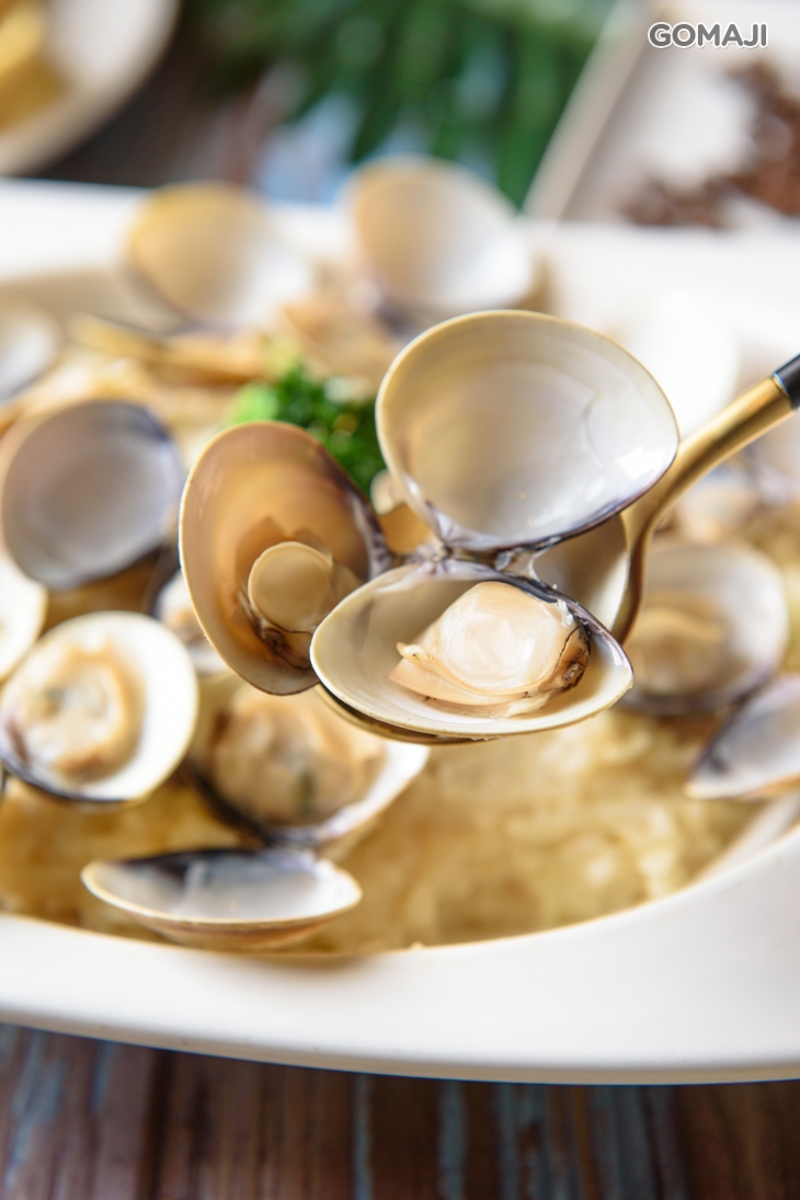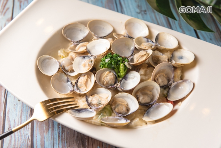 滿滿的蛤蠣如繁花般盛開,飽滿肥美的肉質令人光看著就垂涎不已!送入口中享受咕溜多汁的美味在舌尖迸發,配上溫潤醇香的燉飯一起入口,美味更加乘!