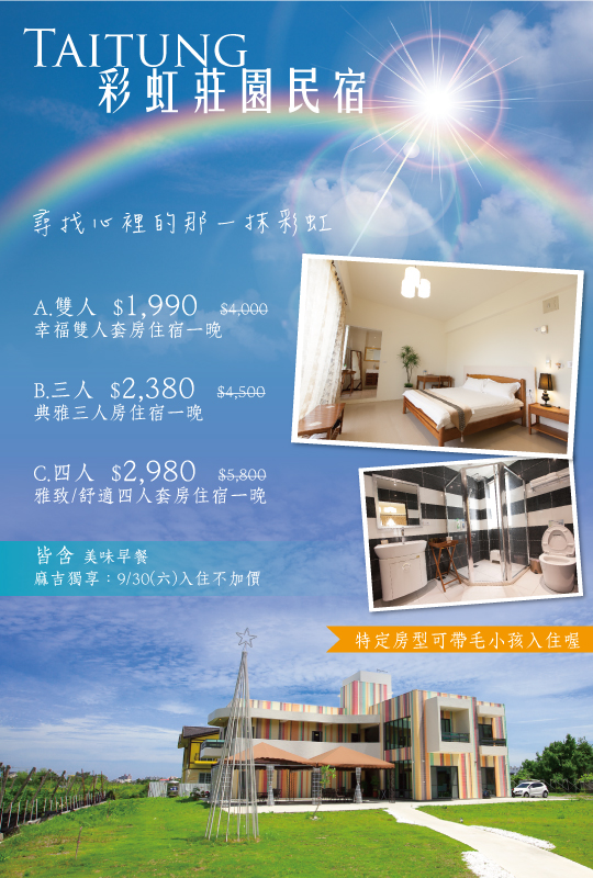 【台東-彩虹莊園民宿】感謝麻吉們熱烈搶購,已全數賣光光。