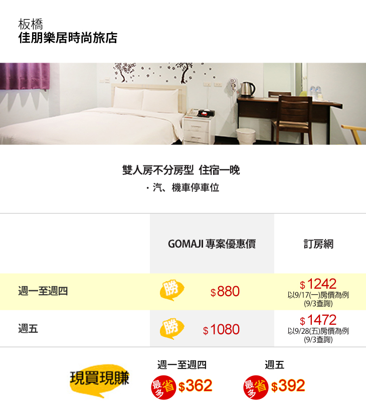 【板橋-佳朋樂居時尚旅店】感謝麻吉們熱烈搶購,已全數賣光光。