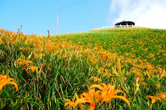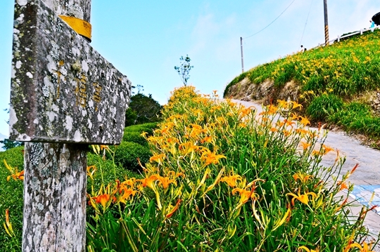 ~穿過金黃忘憂草,位於金針山腳下的藍白度假旅店~