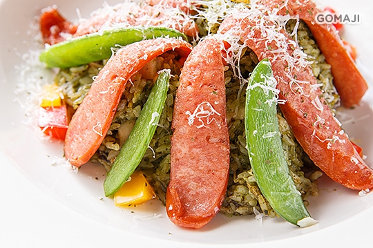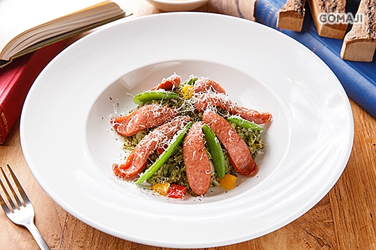 德式香腸肉香滿溢,搭配濃郁青醬與入味又濕潤的燉飯,讓麻吉的舌頭盡嚐豐富的美食滋味~