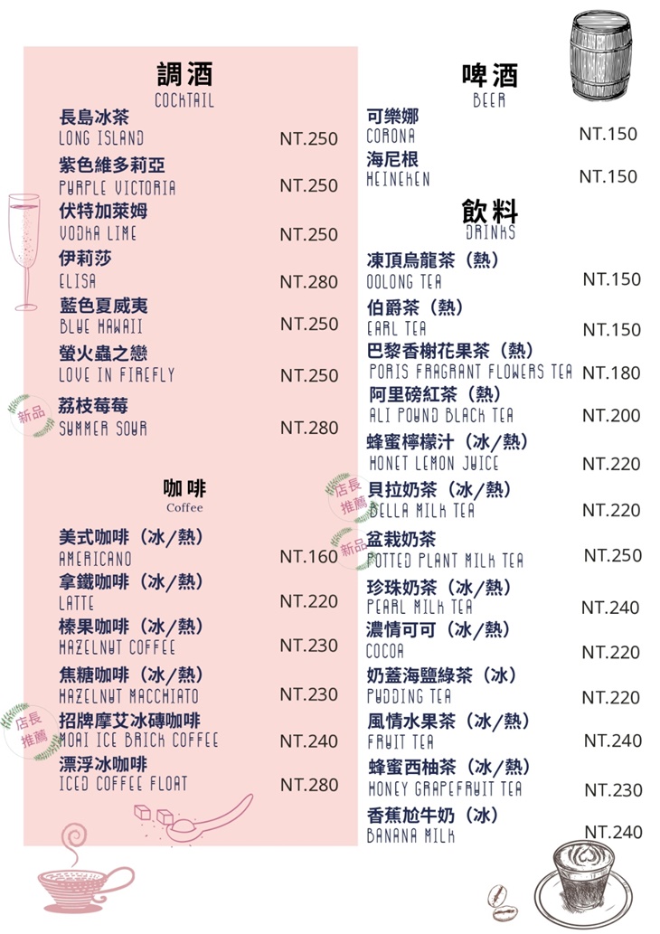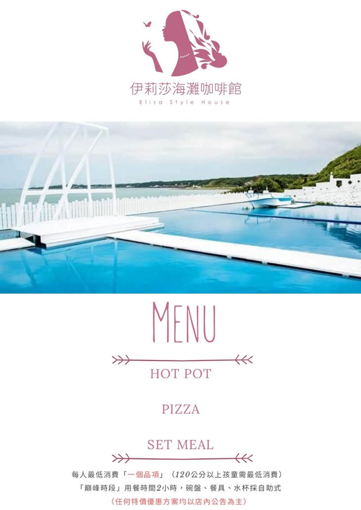 「伊莉莎」意指"優雅的女性"和"蝴蝶",是美麗和自由的代表,五彩斑斕、絢麗多彩。象徵幸福美好,配色使用粉紅色,而在色彩心理學分析上有著不同的意義,它可以喚起趣味和年輕的感受,較淺的色調則帶著更浪漫和細膩的感覺。獨特裝潢設計及地中海風格,新的領導執行團隊,翻新強化餐飲品質並提升優質服務以及用心打造浪漫舒適環境,讓您在北海岸之旅能夠留下美好的體驗和回憶。