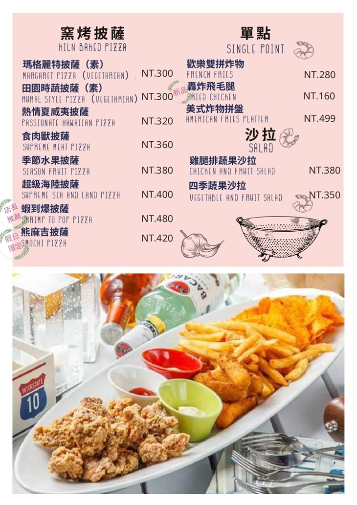 超人氣的美式炸物拼盤,根根香酥的可口薯條、雞米花等,還有多種沾醬可供選擇,滿足您的口腹之慾,愈吃愈是欲罷不能,好吃到破表!