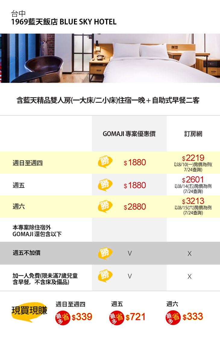 【台中-1969藍天飯店 BLUE SKY HOTEL】感謝麻吉們熱烈搶購,已全數賣光光。