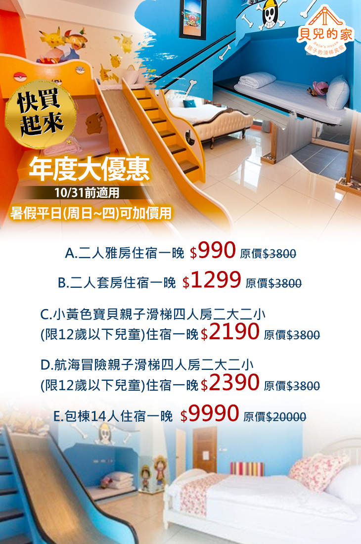 【宜蘭-貝兒的家‧孩子的滑梯民宿】感謝麻吉們熱烈搶購,已全數賣光光。