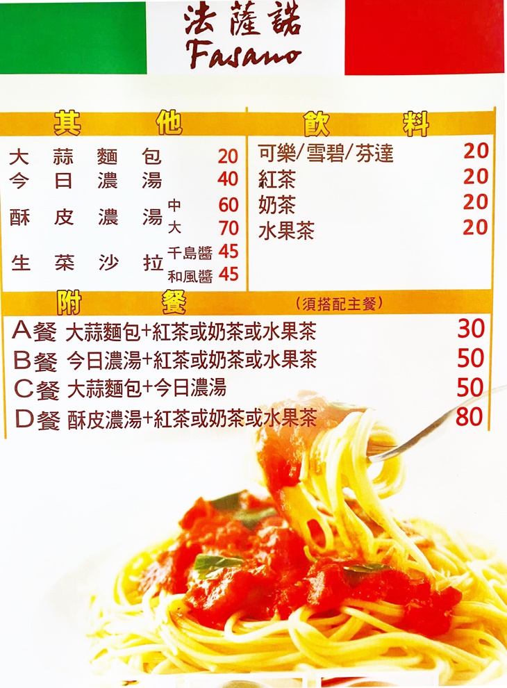 簡約雅致的用餐環境,在不同擺設妝點下,更加顯現出滿室的溫馨氛圍!這裡的餐點講求新鮮、美味,期望帶給每位顧客CP值破表的美食!投入滿滿的用心製作出每道平價卻不失美味的餐點,在料理中加入情感與溫度,每一口都能感受店家的真心誠意 ~ 快相約親朋好友來品嚐,讓法薩諾義大利麵為您開啟美好的一天吧 !
