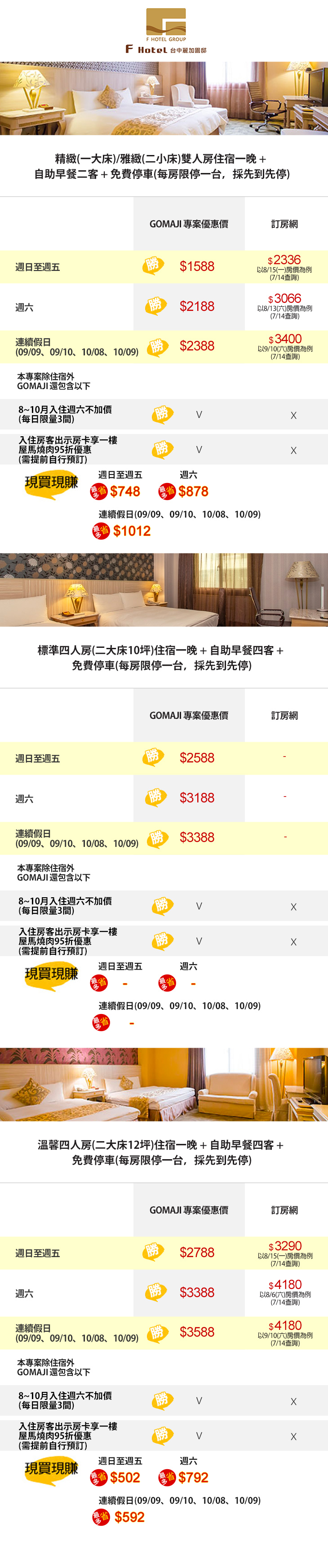 【F HOTEL 台中麗加園邸】感謝麻吉們熱烈搶購,已全數賣光光。
