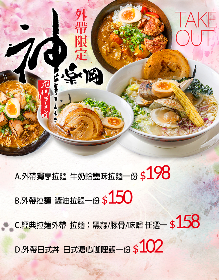 A.外帶獨享拉麵