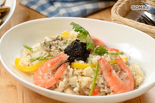 奶油松露鮮蝦燉飯散發濃郁香氣,奶油的濃醇滑順與松露的特殊香氣相得益彰。燉飯粒粒分明,帶有微微的嚼勁,並吸收了醬汁的豐富滋味。新鮮大蝦緊實彈牙,與燉飯的柔軟質地形成對比,讓整道料理更加豐富有層次。松露的迷人香氣持續在口中徘徊,每一口都充滿高雅的風味,適合追求細膩與奢華口感的饕客。