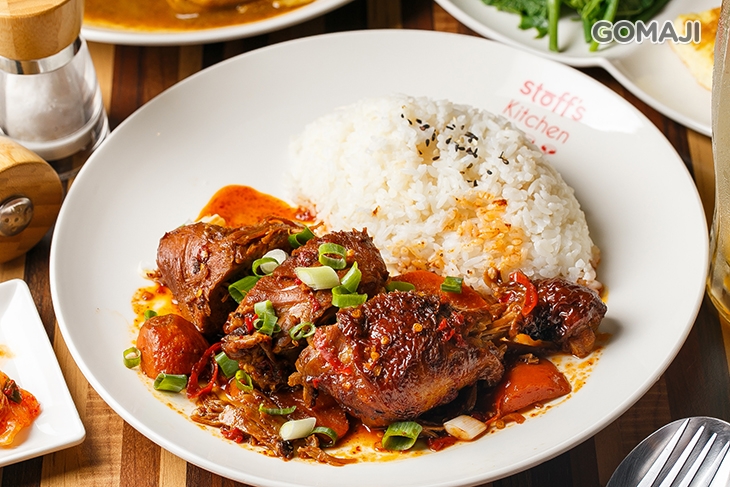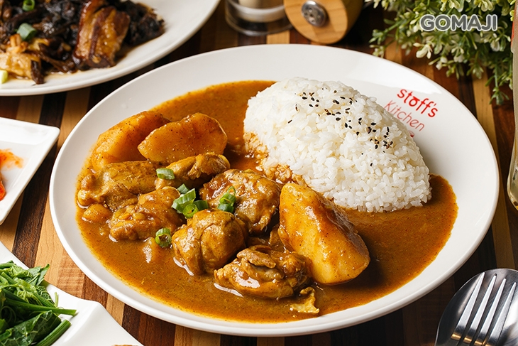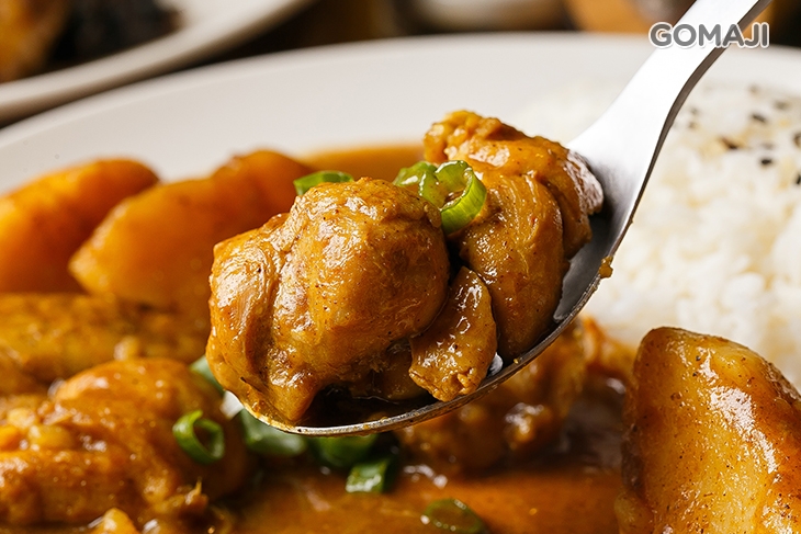 採用優質品種雞肉,經過細心處理後,加入咖哩、馬鈴薯等食材,慢燉慢煮,雞肉瞬間換上一身亮麗衣裳,肉嫩汁鮮,醬汁濃稠入味,鹹甜適中,與米飯一口配著一口,幸福讓您我立即擁有!最後再搭配超值組合附上的小菜與飲料,堪稱完美!