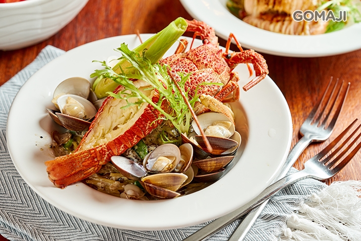 結合視覺與味覺的豪華之作!嚴選整隻南非黃金龍蝦,搭配新鮮直送的肥美蛤蠣,融入由香濃的奶油松露醬汁精心調配的麵條之中,口感極為清爽!作為整道料理的主角 - 龍蝦,絕對是最大亮點,隱藏在豔紅外殼內的蝦肉,細緻柔嫩、鮮香四溢,每一口都是如此的誘人,推薦給您!