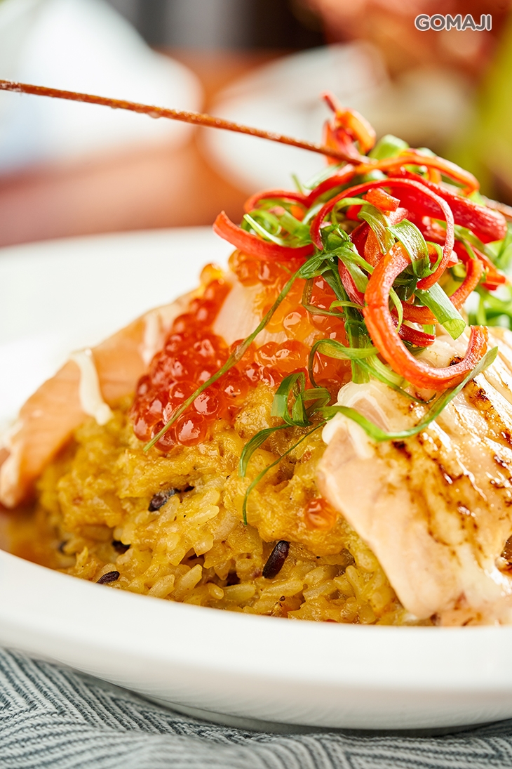 ◆ 炙燒鮭魚生干貝南洋紅咖哩燉飯