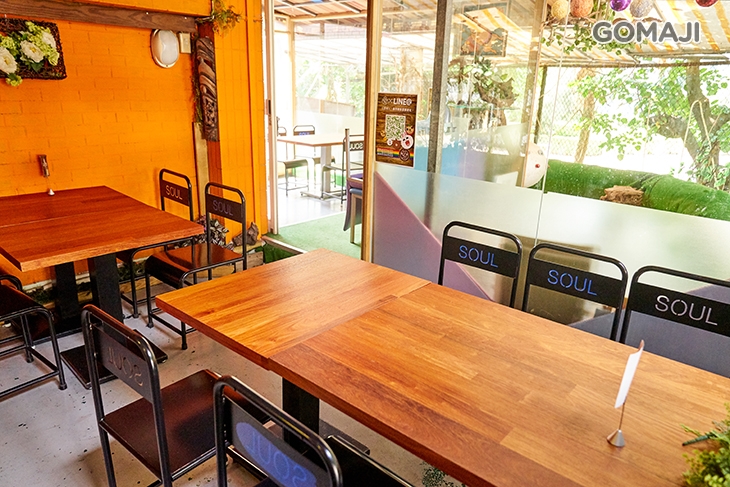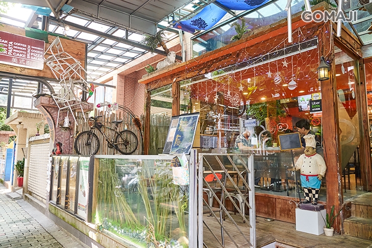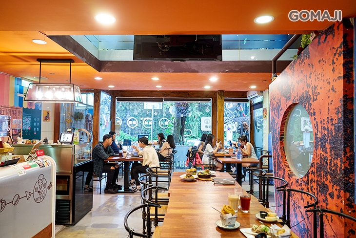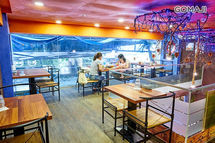 隱身於車水馬龍的北新路及人潮絡繹不絕的市公所周邊,店內的擺設與裝潢都是經由老闆一手設計,2層樓挑高樓中樓,藍紫色色調的地中海風格,營造出一種輕鬆自在的用餐氛圍。