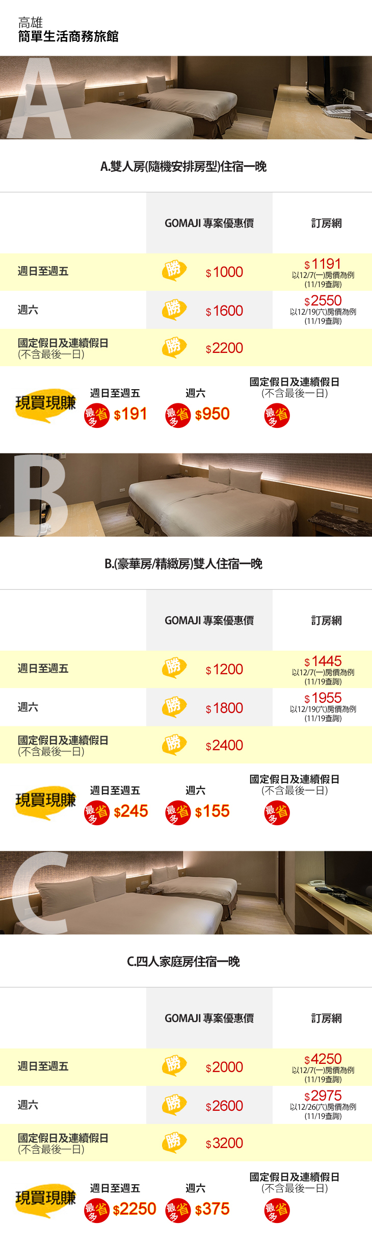 【高雄-簡單生活商務旅館】感謝麻吉們熱烈搶購,已全數賣光光。
